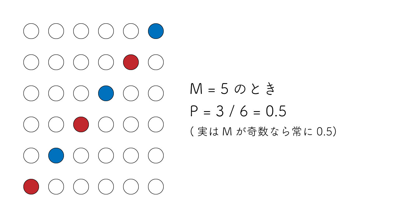 $m_i = 5$ の場合は下図の通り。 一般化すると、 $m_i$ が奇数のときは常に $p_i = 0.5$ となる。