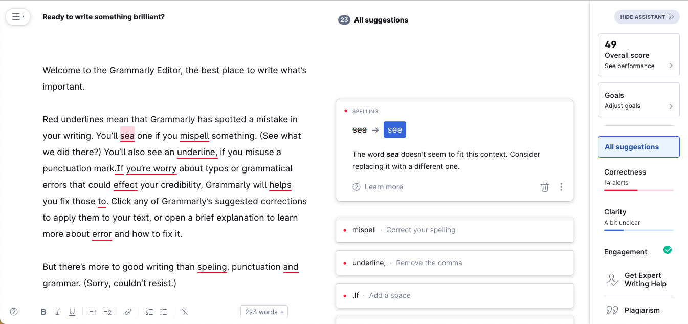 英語の校正ツール です. 三単現等の文法ミスや読みづらい文を指摘したり,全体の読みやすさを点数で出してくれたりします.